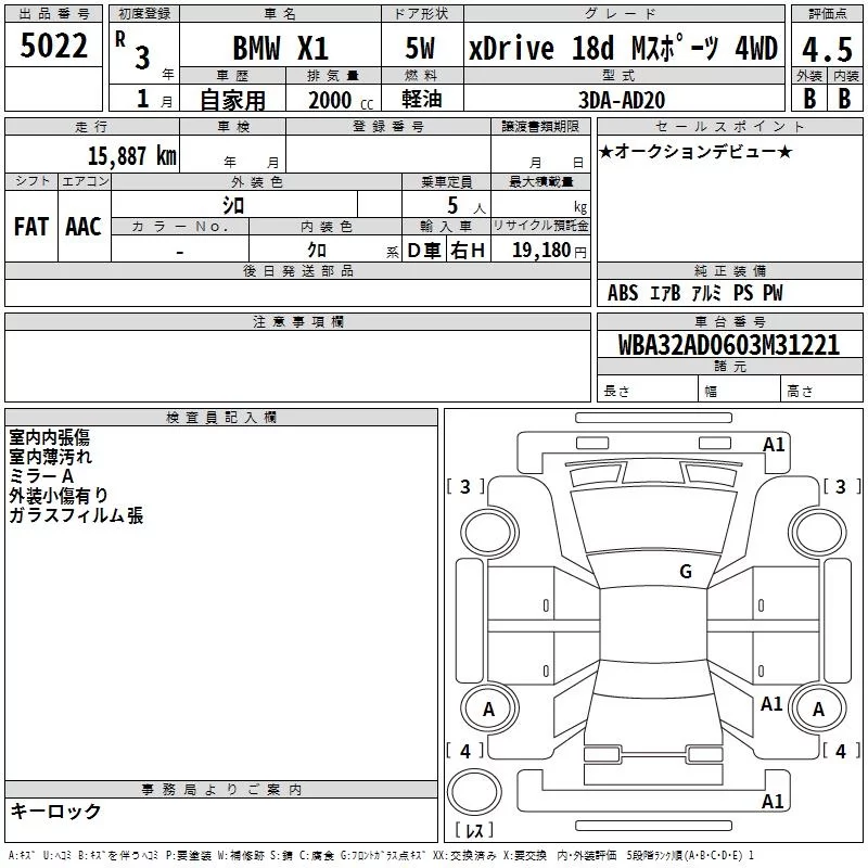 BMW X1 с аукциона Японии TAA Yokohama лот № 5022