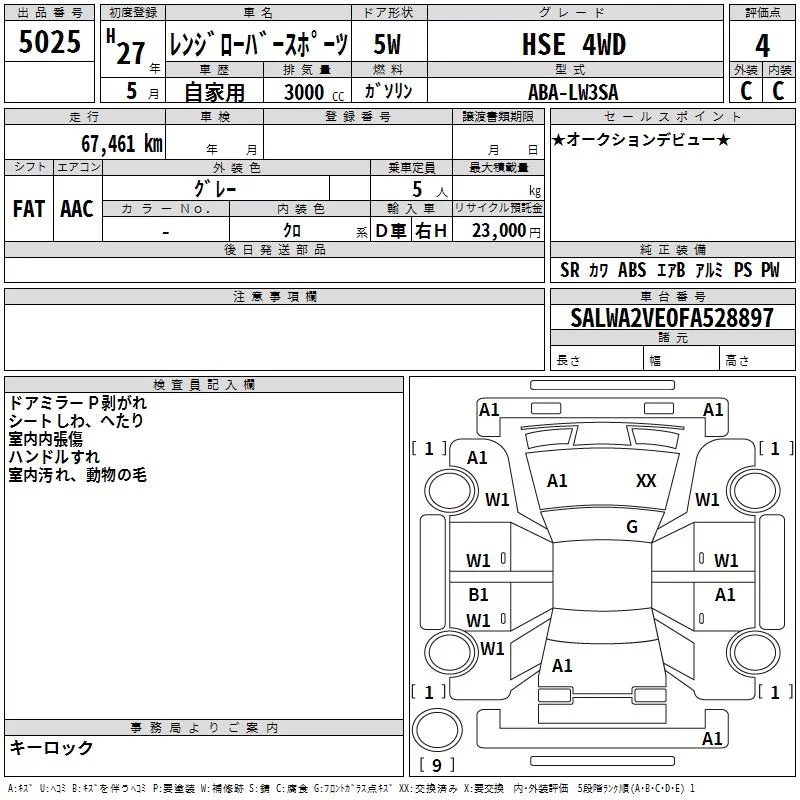 Rover RANGE ROVER с аукциона Японии TAA Yokohama лот № 5025