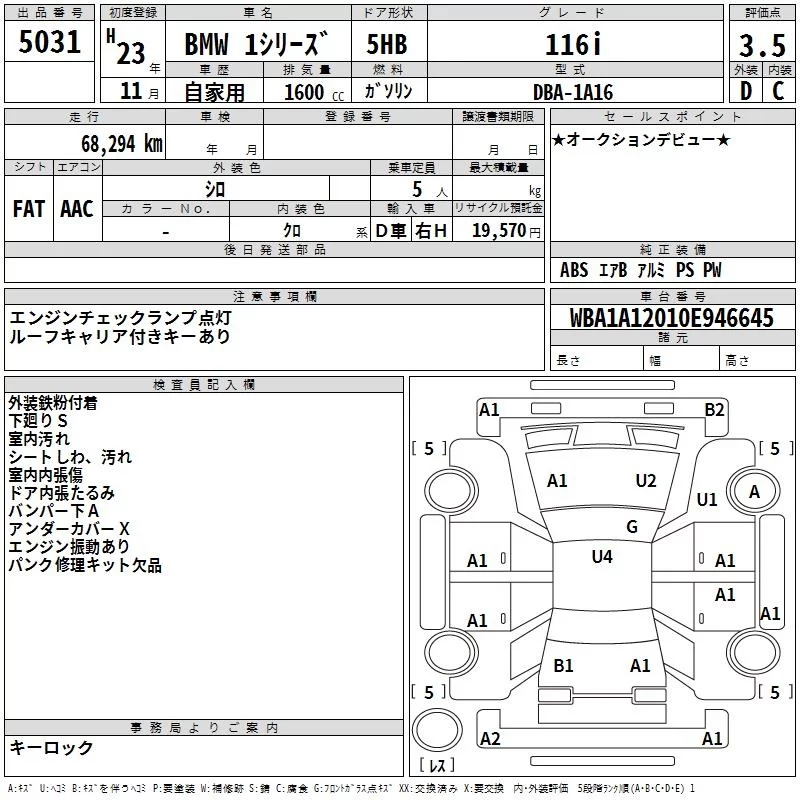 BMW 1-Series с аукциона Японии TAA Yokohama лот № 5031