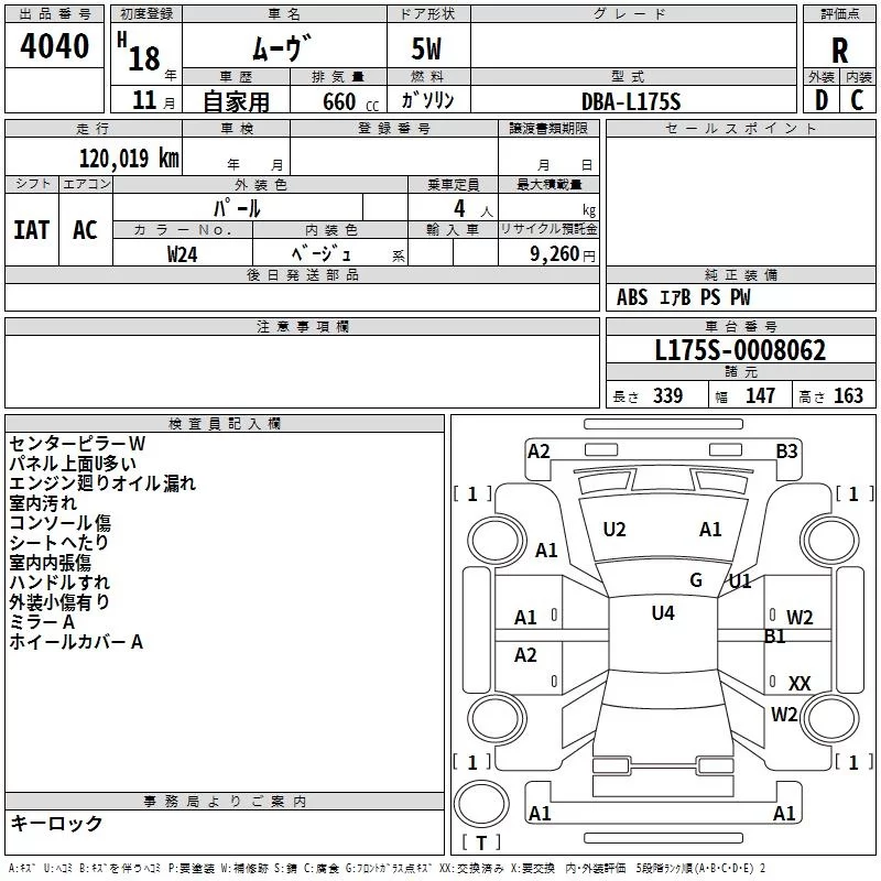 Daihatsu MOVE с аукциона Японии TAA Hyogo лот № 4040