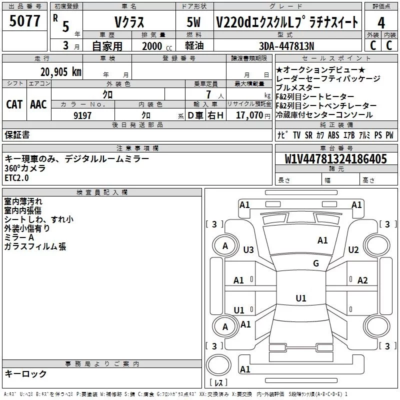 Mercedes-Benz V CLASS с аукциона Японии TAA Yokohama лот № 5077
