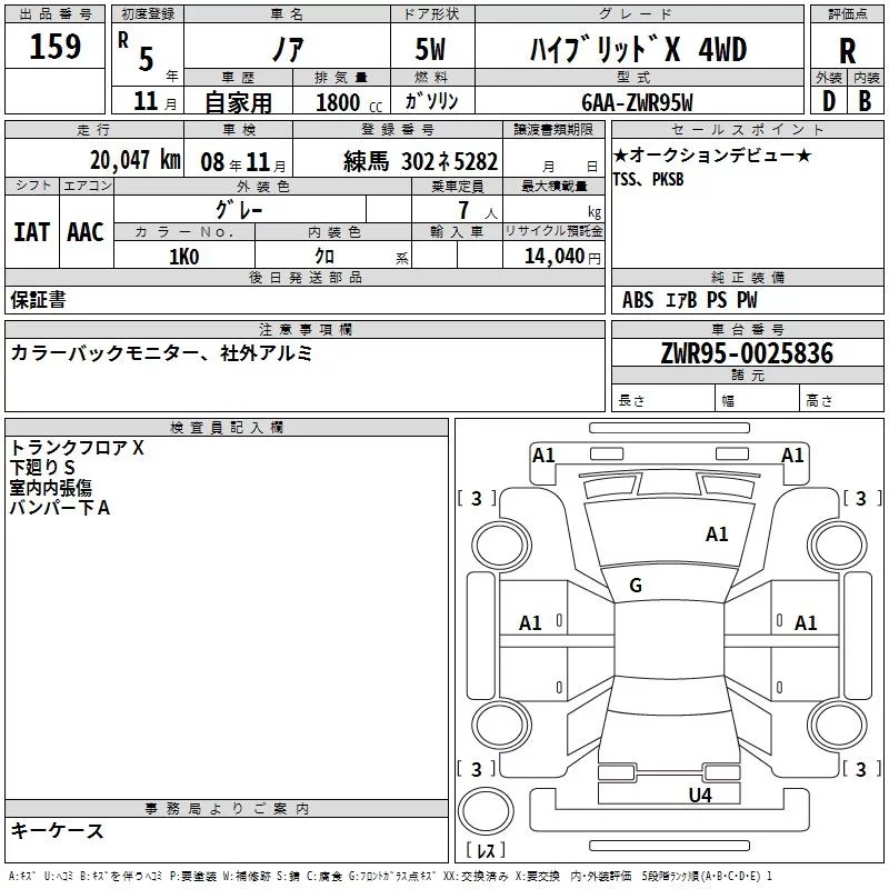 Toyota NOAH с аукциона Японии TAA Yokohama лот № 159