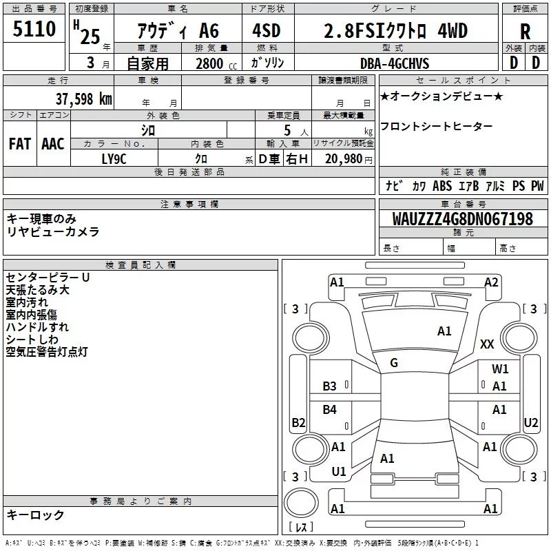 Audi A6 с аукциона Японии TAA Yokohama лот № 5110