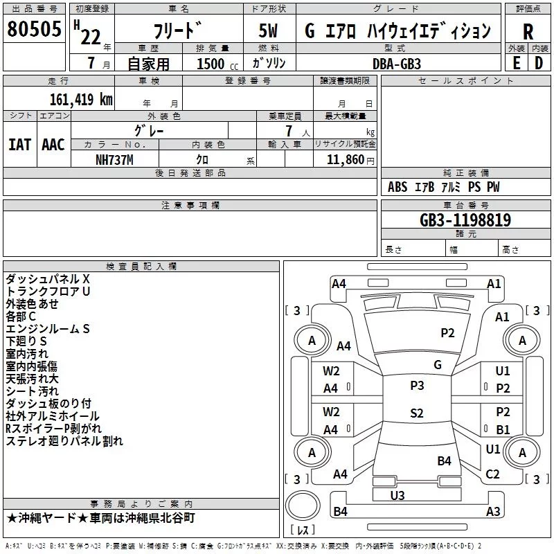 Honda FREED с аукциона Японии TAA Yokohama лот № 80505