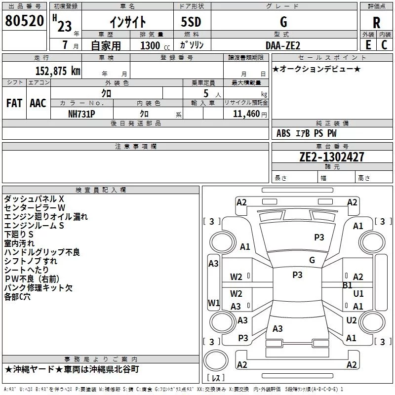 Honda INSIGHT с аукциона Японии TAA Yokohama лот № 80520