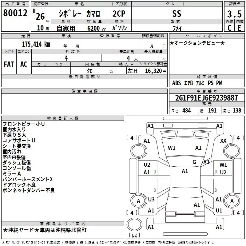 GM CHEVROLET CAMARO с аукциона Японии TAA Yokohama лот № 80012