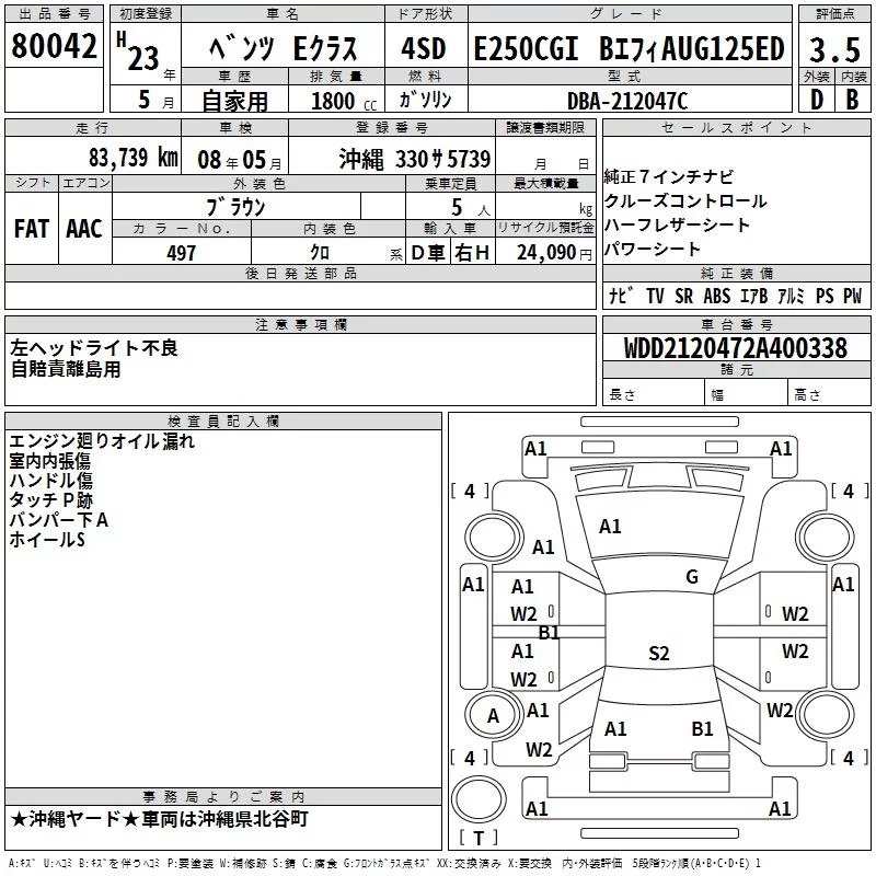 Mercedes-Benz E CLASS с аукциона Японии TAA Yokohama лот № 80042