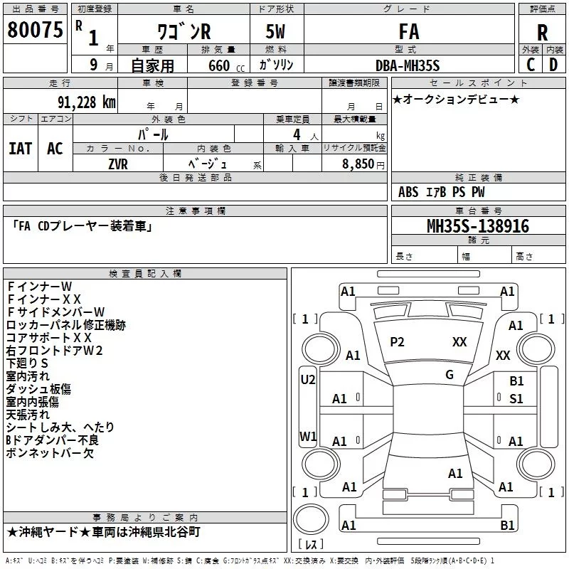 Suzuki WAGON R с аукциона Японии TAA Yokohama лот № 80075