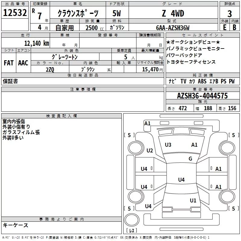 Toyota CROWN SPORT с аукциона Японии TAA Yokohama лот № 12532