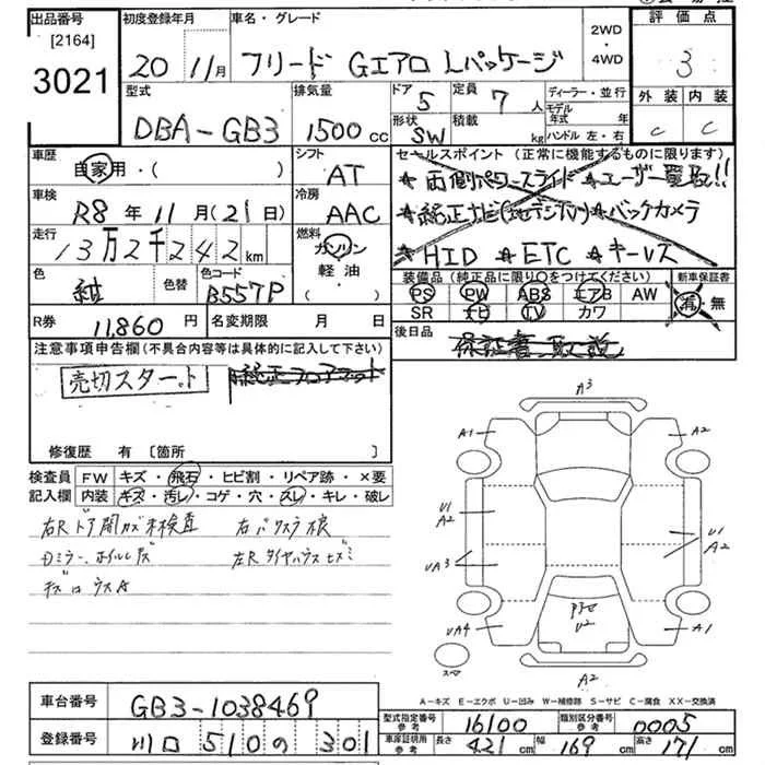 Honda FREED с аукциона Японии JU Tokyo лот № 3021