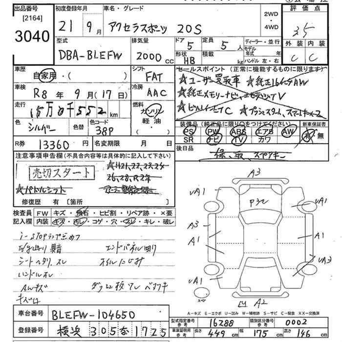 Mazda AXELA с аукциона Японии JU Tokyo лот № 3040