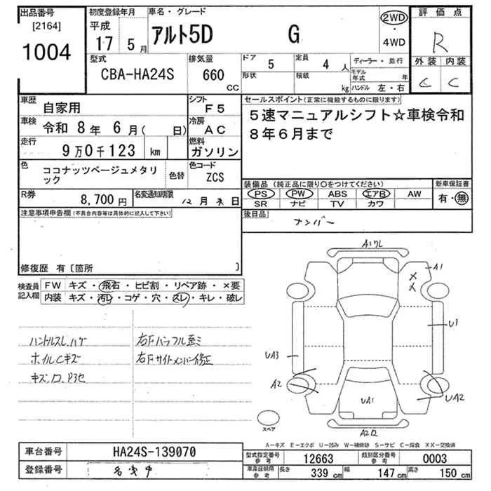Suzuki ALTO с аукциона Японии JU Tokyo лот № 1004