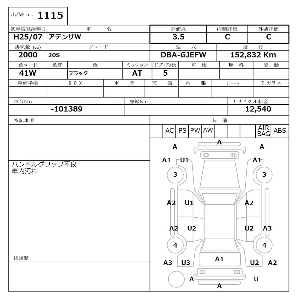Mazda ATENZA WAGON с аукциона Японии NISSAN Osaka лот № 1115