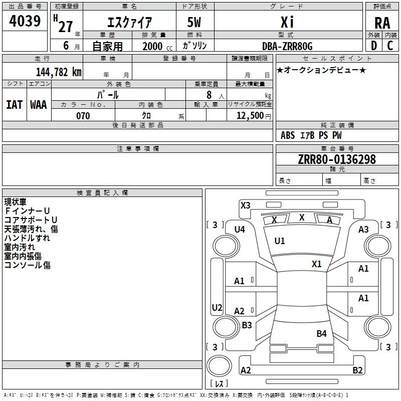 Toyota ESQUIRE с аукциона Японии TAA Hiroshima лот № 4039