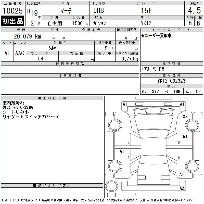 Nissan MARCH с аукциона Японии CAA Tokyo лот № 10025