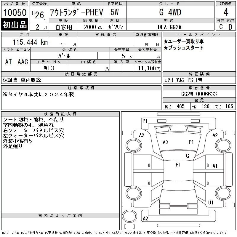 Mitsubishi OUTLANDER PHEV с аукциона Японии CAA Tokyo лот № 10050