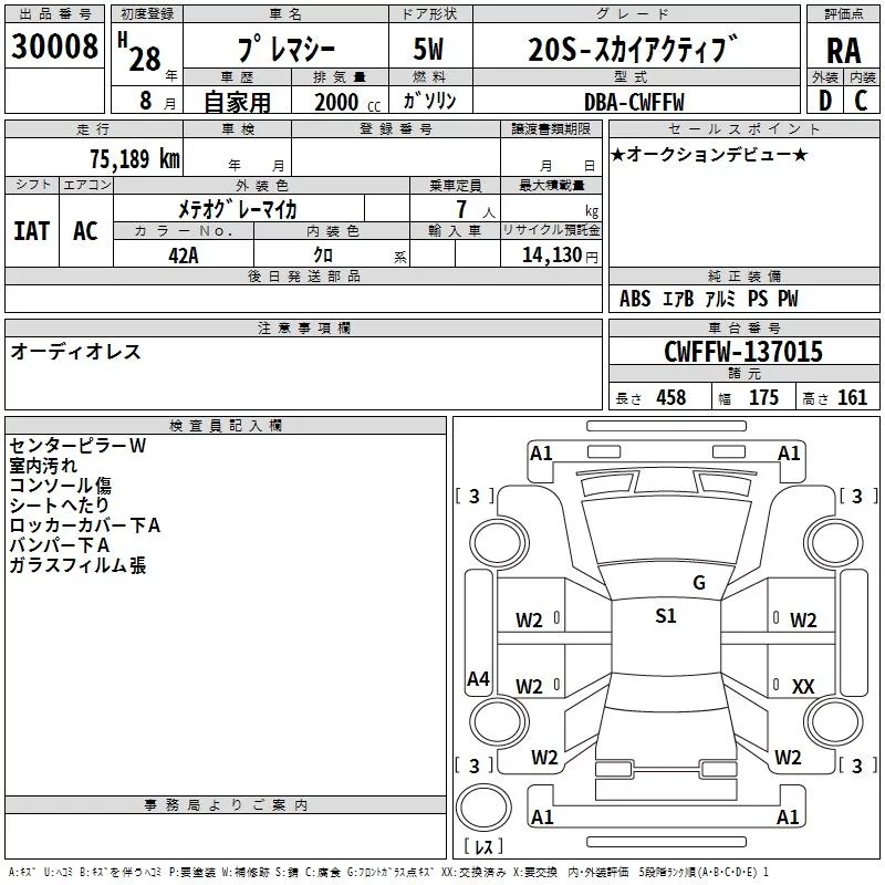 Mazda PREMACY с аукциона Японии TAA Kyushu лот № 30008