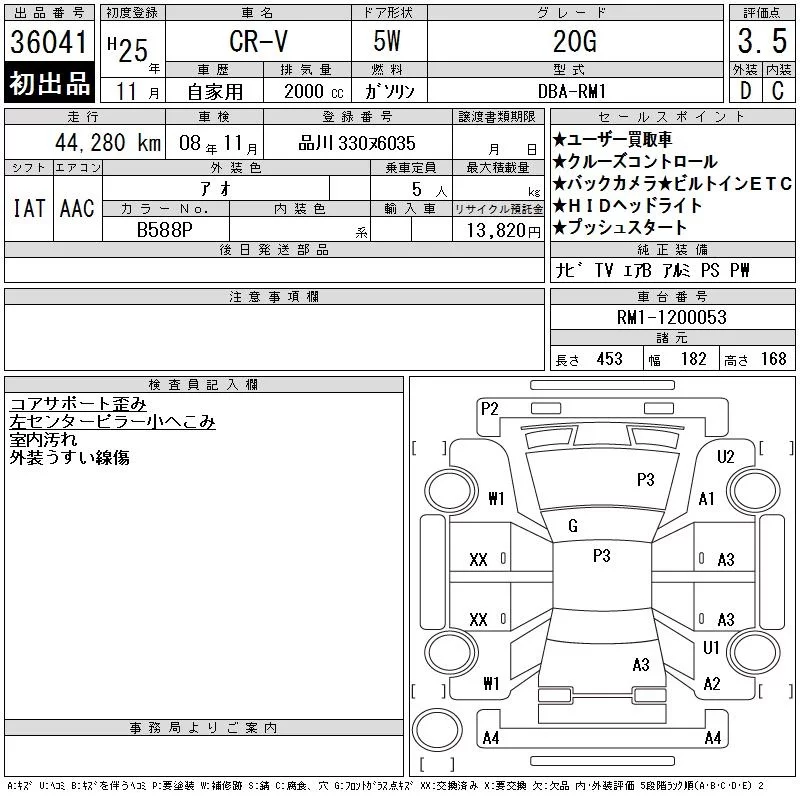 Honda CR-V с аукциона Японии CAA Tokyo лот № 36041