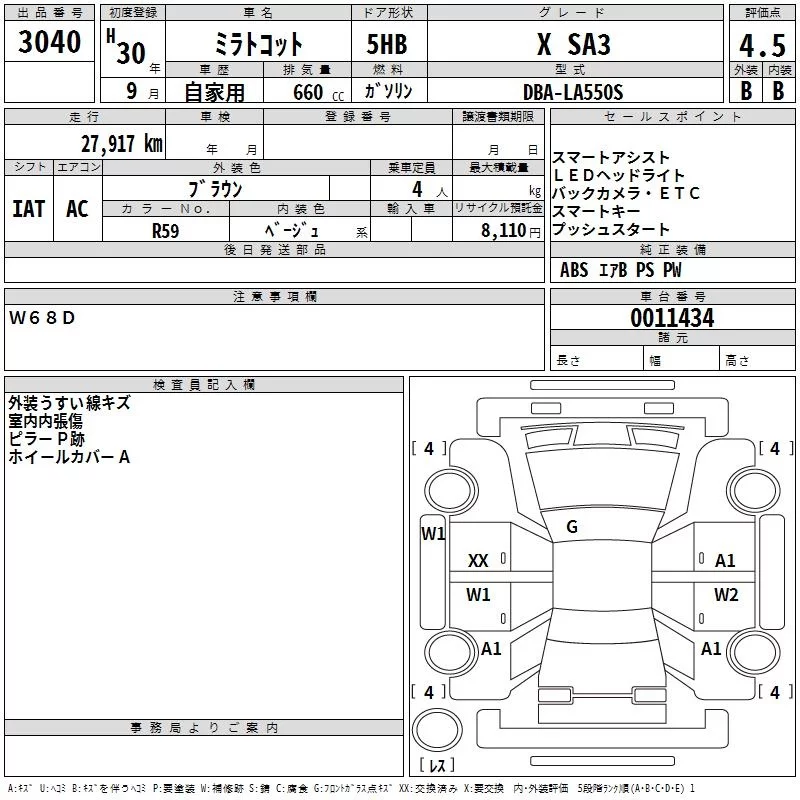 Daihatsu MIRA TOCOT с аукциона Японии TAA Kinki лот № 3040