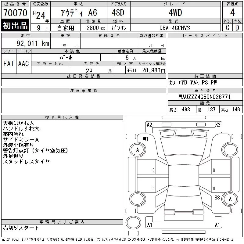 Audi A6 с аукциона Японии CAA Gifu лот № 70070