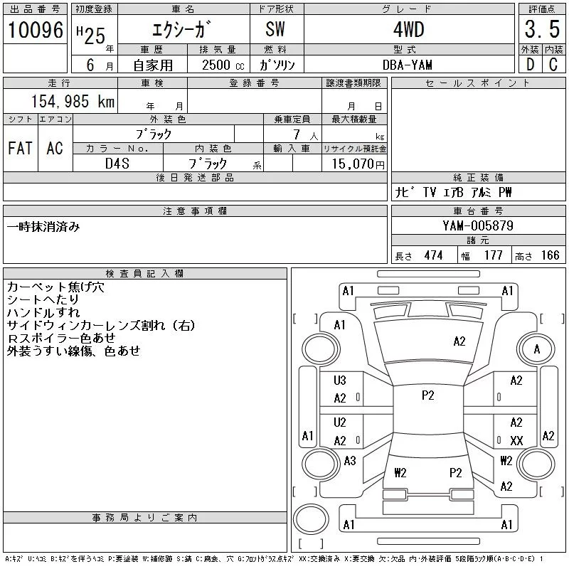 Subaru EXIGA с аукциона Японии CAA Tokyo лот № 10096