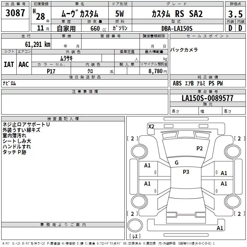 Daihatsu MOVE с аукциона Японии TAA Kinki лот № 3087