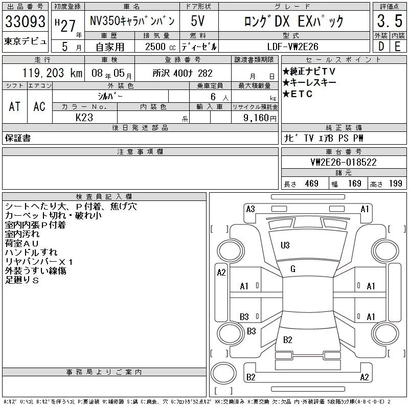 Nissan CARAVAN VAN с аукциона Японии CAA Tokyo лот № 33093