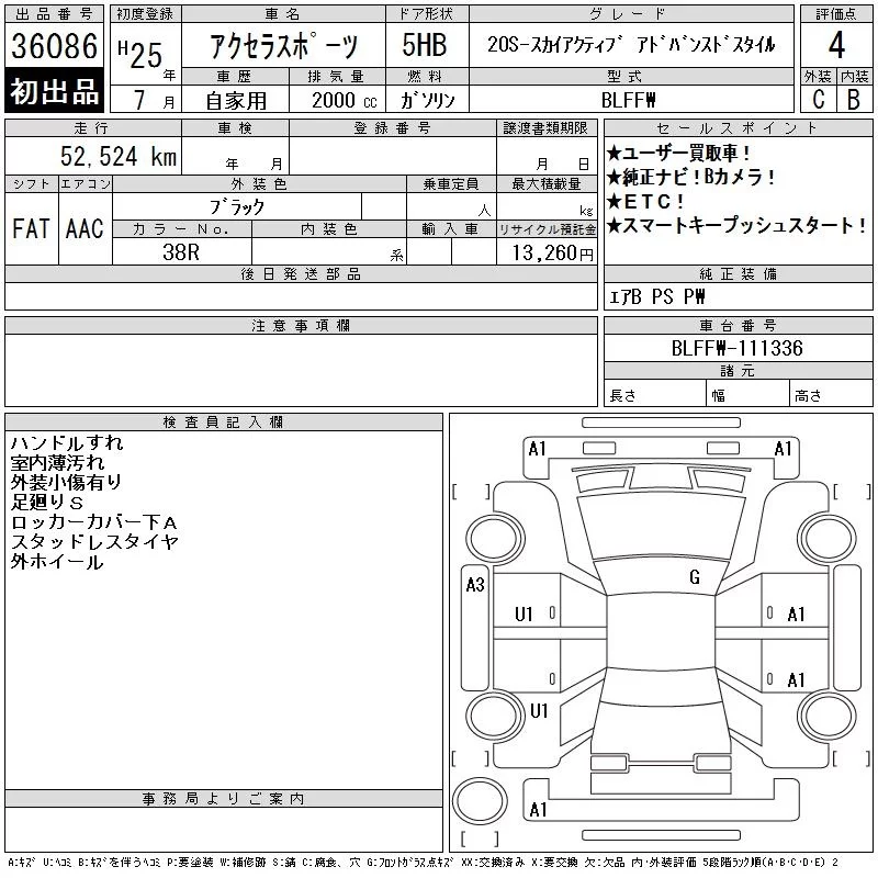 Mazda AXELA с аукциона Японии CAA Tokyo лот № 36086
