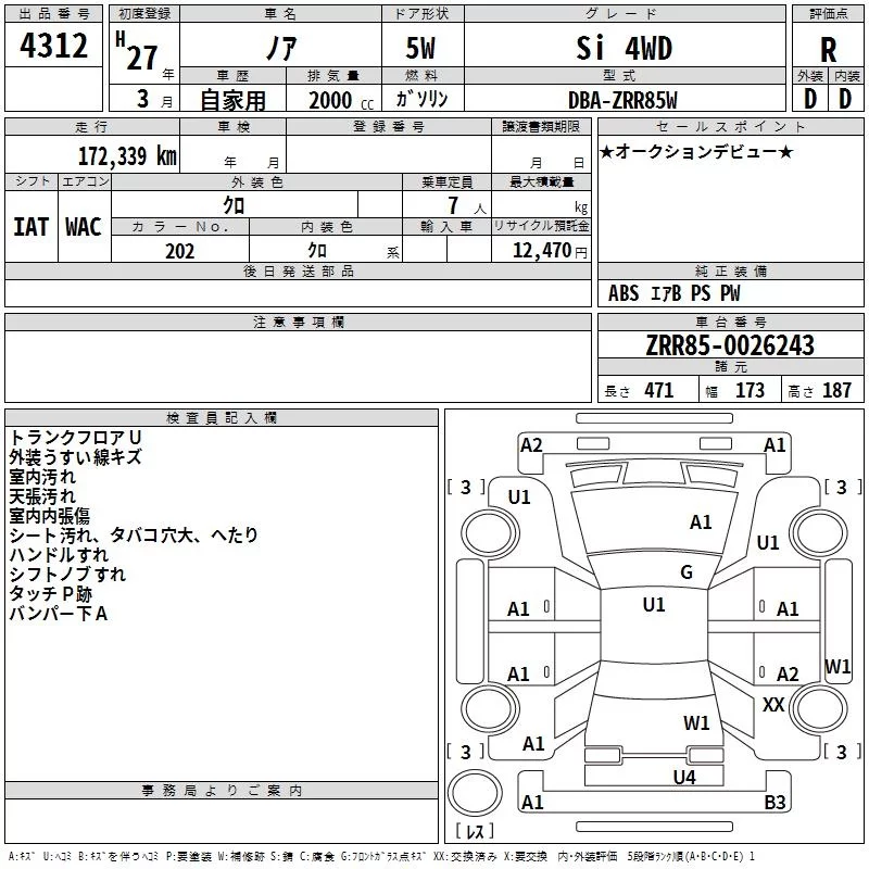 Toyota NOAH с аукциона Японии TAA Hiroshima лот № 4312