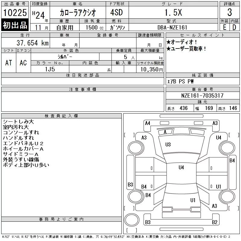 Toyota COROLLA AXIO с аукциона Японии CAA Tokyo лот № 10225