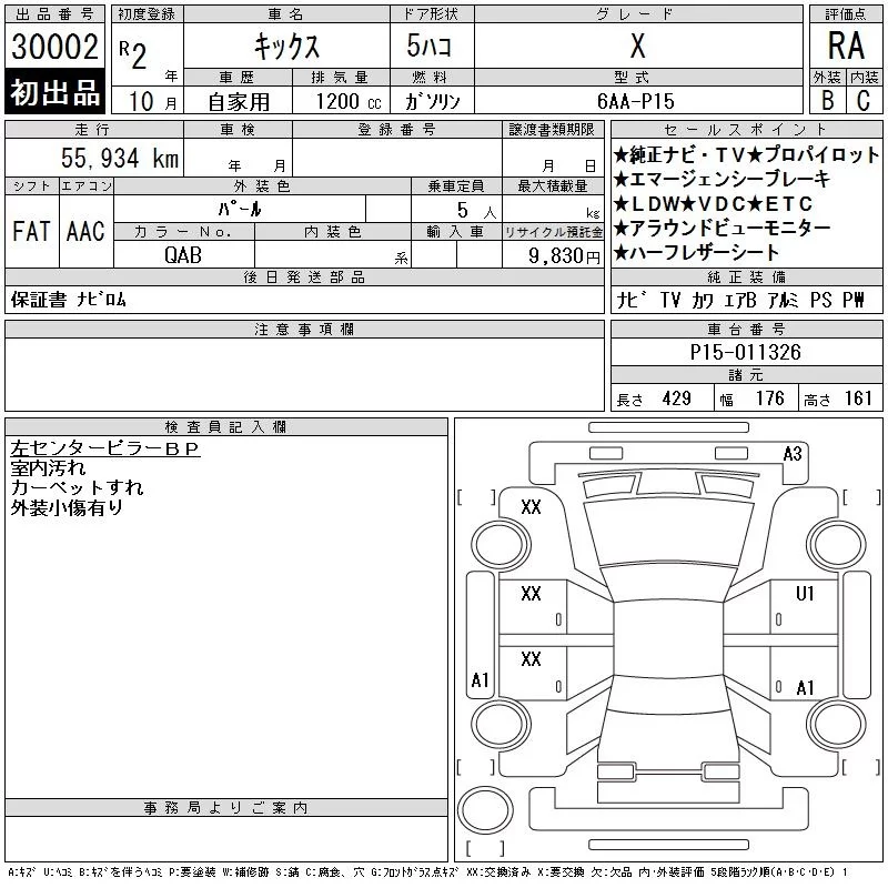 Nissan KICKS с аукциона Японии CAA Gifu лот № 30002