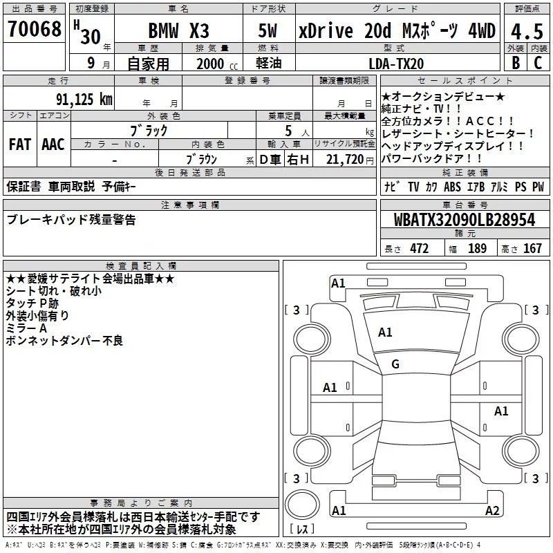BMW X3 с аукциона Японии TAA Shikoku лот № 70068