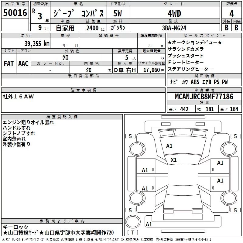 Chrysler JEEP COMPASS с аукциона Японии TAA Hiroshima лот № 50016