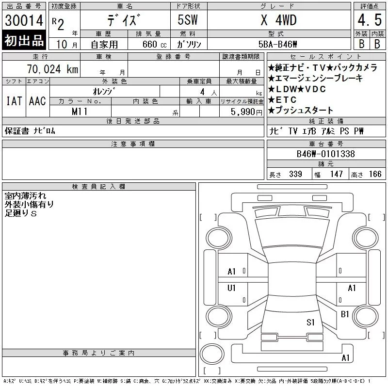 Nissan DAYZ с аукциона Японии CAA Gifu лот № 30014