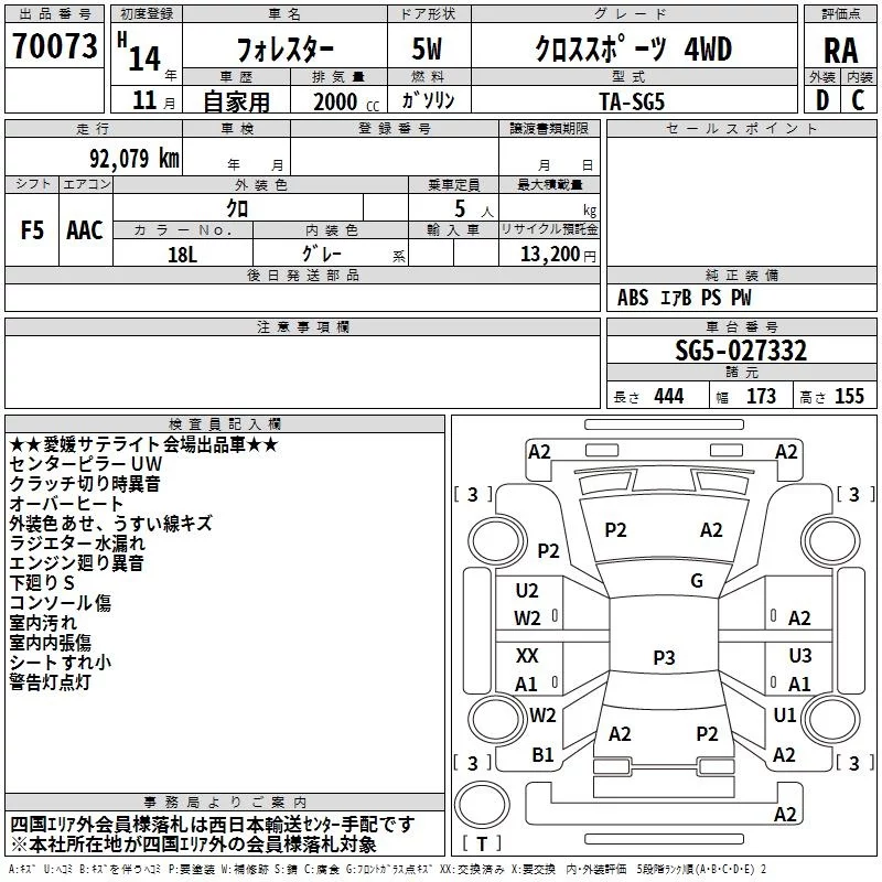 Subaru FORESTER с аукциона Японии TAA Shikoku лот № 70073