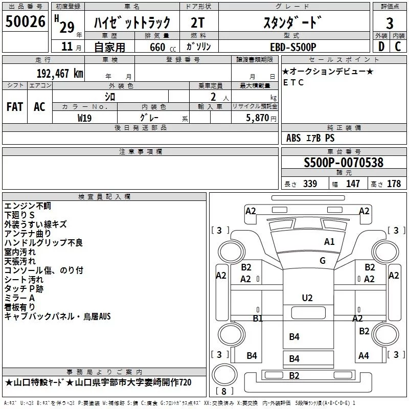 Daihatsu HIJET TRUCK с аукциона Японии TAA Hiroshima лот № 50026