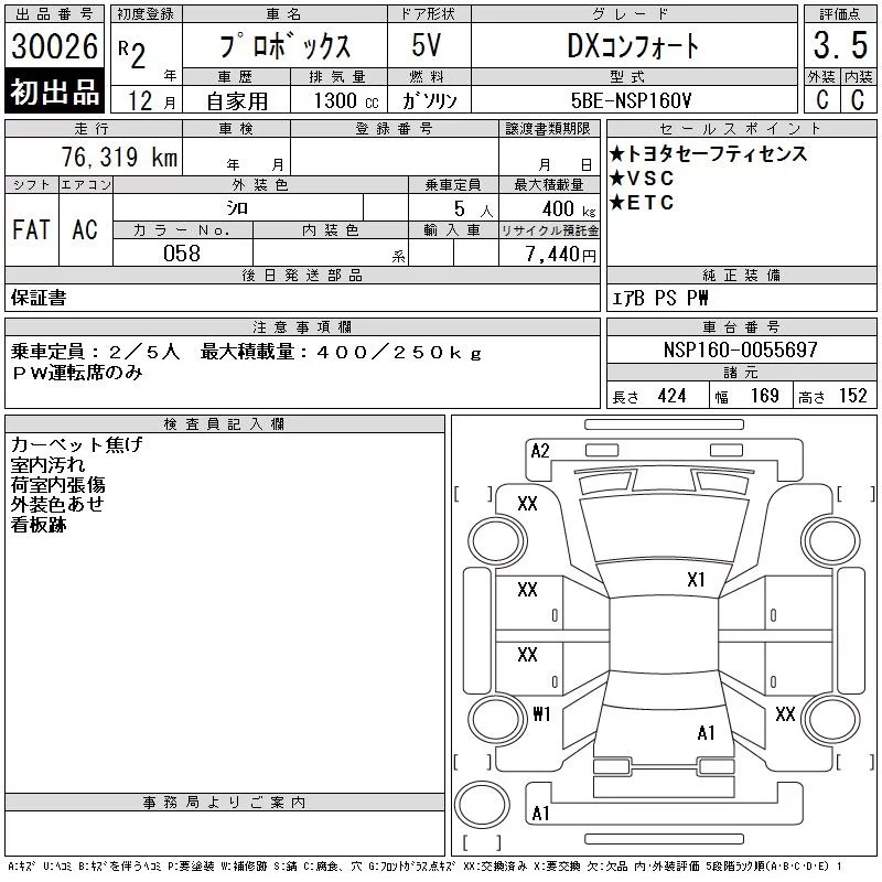 Toyota PROBOX с аукциона Японии CAA Gifu лот № 30026