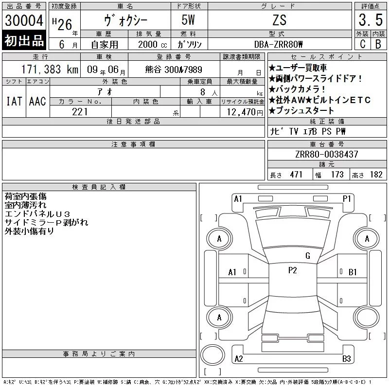 Toyota VOXY с аукциона Японии CAA Tokyo лот № 30004