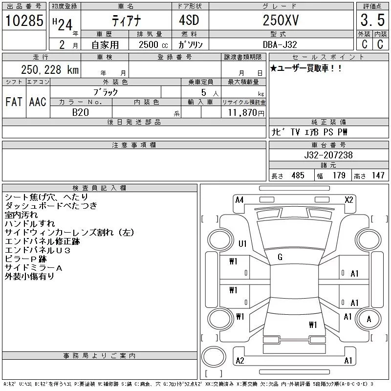 Nissan TEANA с аукциона Японии CAA Tokyo лот № 10285
