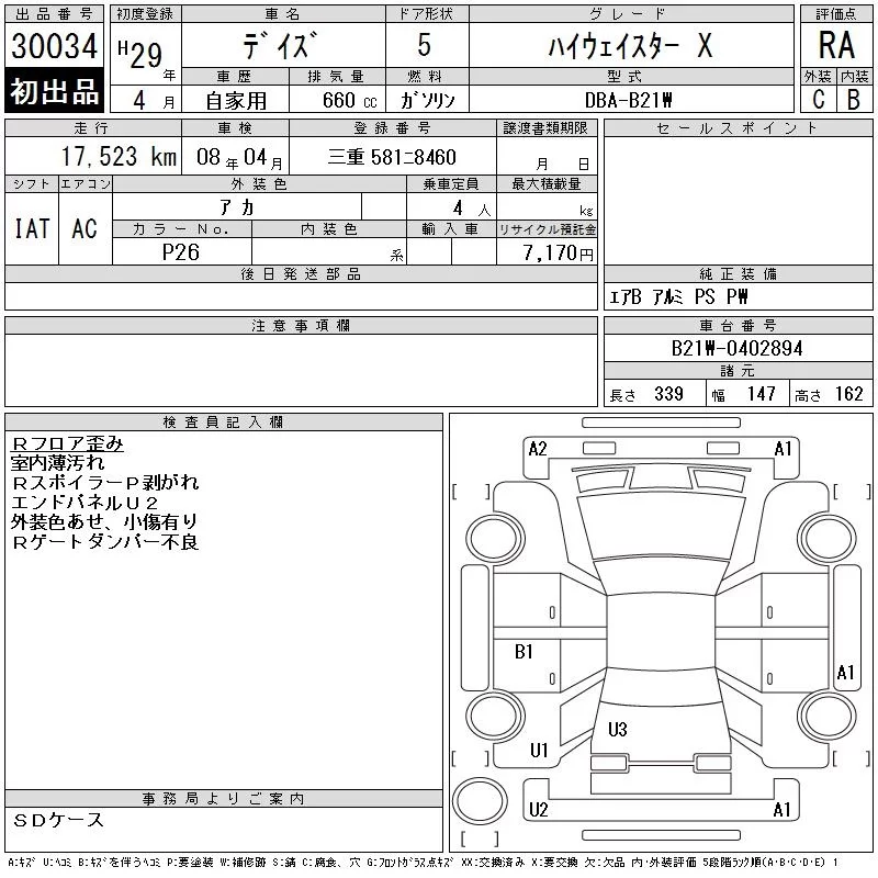 Nissan DAYZ с аукциона Японии CAA Gifu лот № 30034