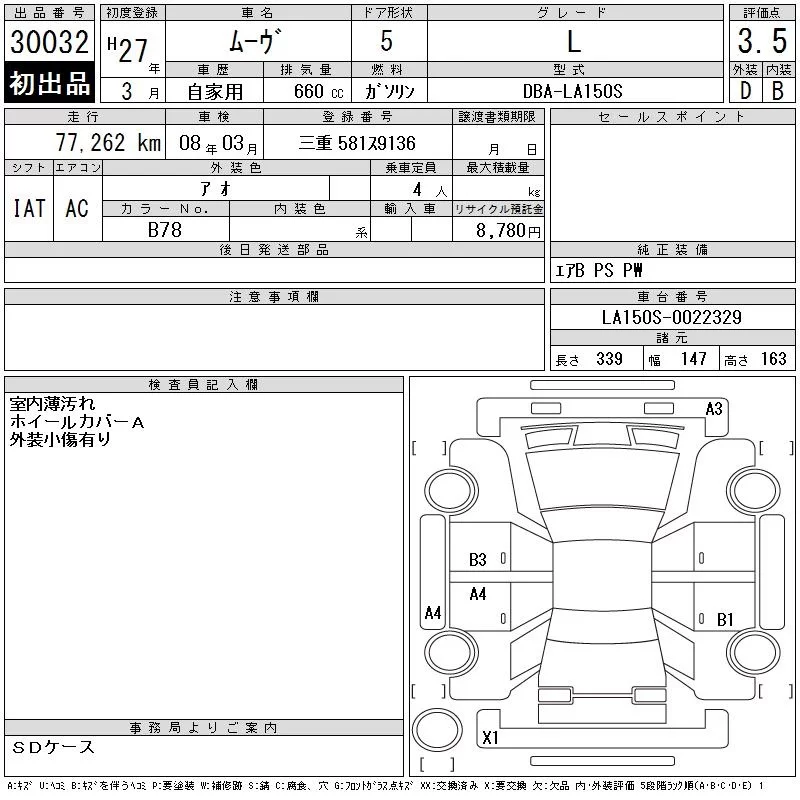 Daihatsu MOVE с аукциона Японии CAA Gifu лот № 30032