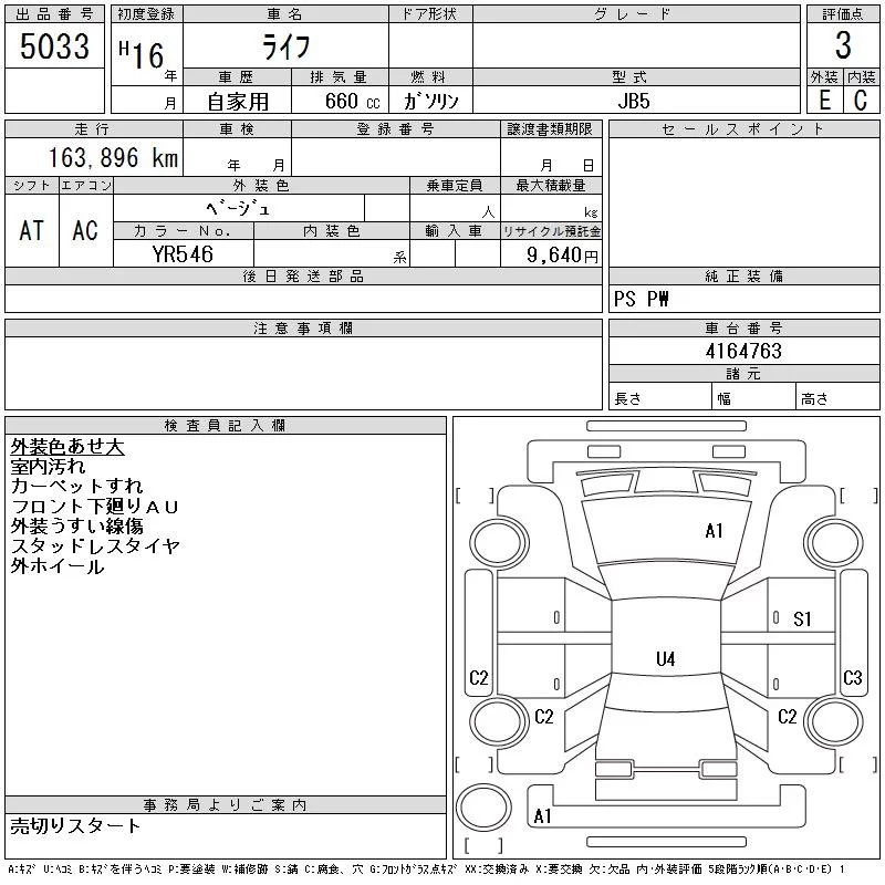 Honda LIFE с аукциона Японии CAA Tohoku лот № 5033