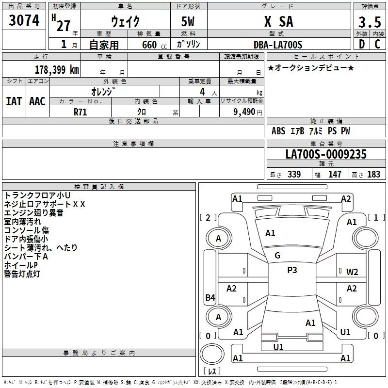Daihatsu WAKE с аукциона Японии TAA Shikoku лот № 3074