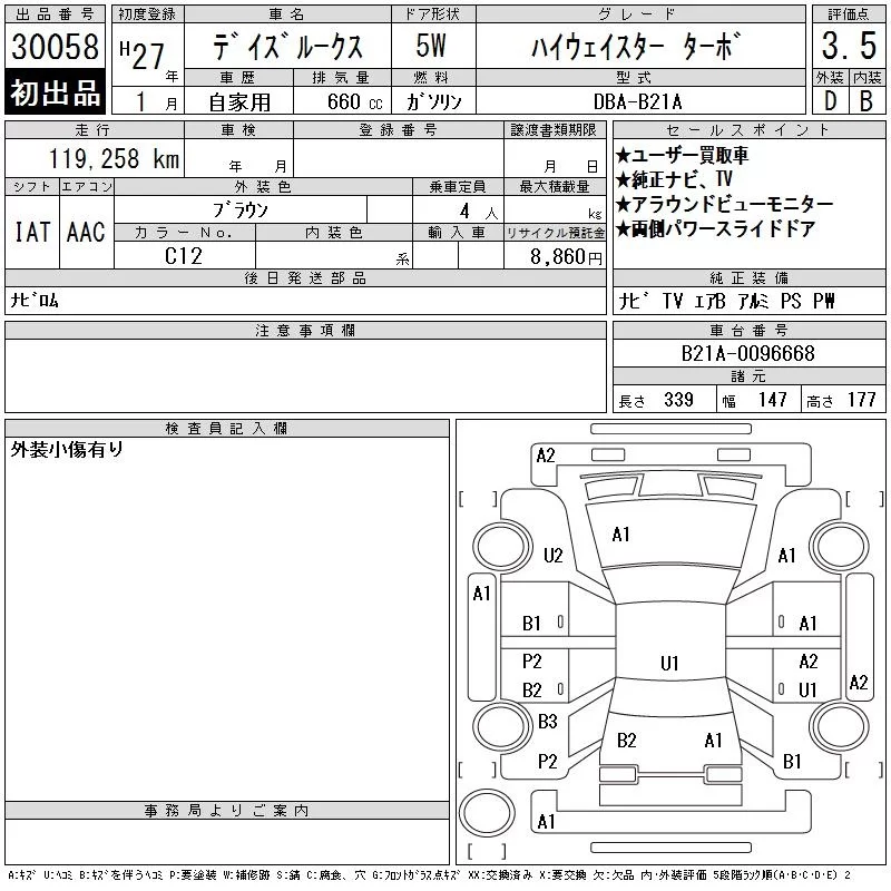Nissan DAYZ ROOX с аукциона Японии CAA Gifu лот № 30058
