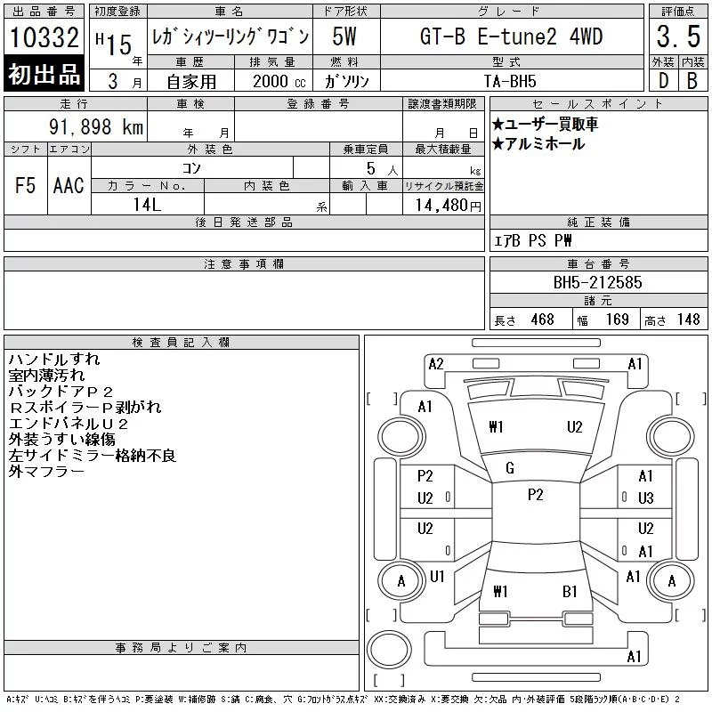 Subaru LEGACY с аукциона Японии CAA Tokyo лот № 10332