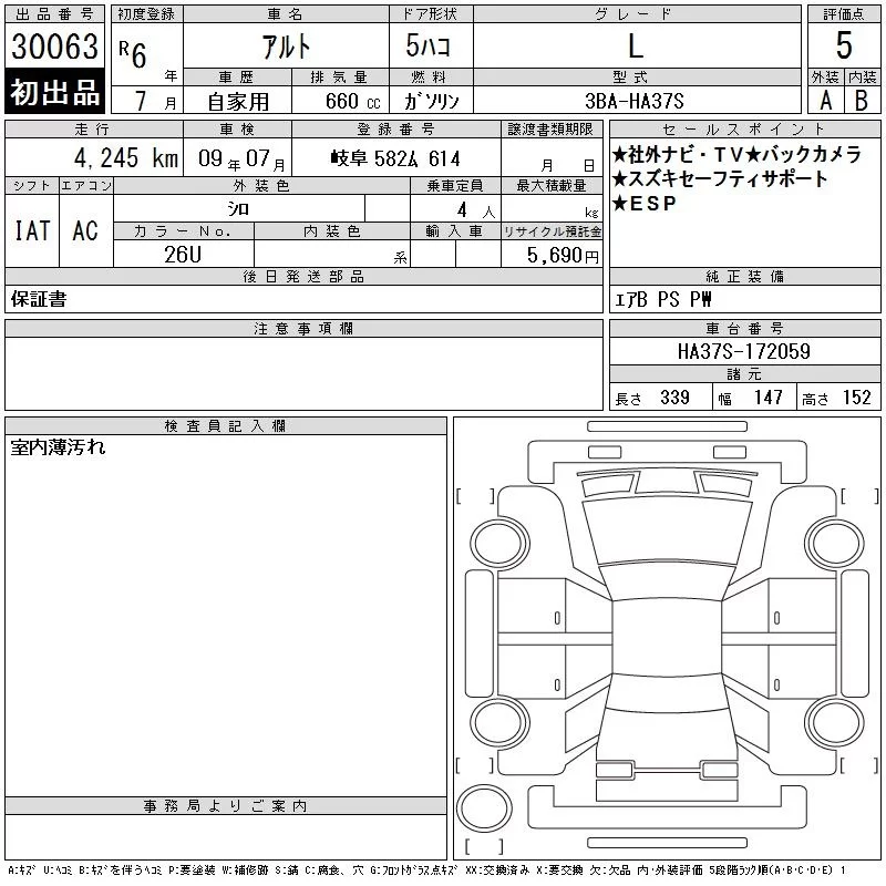 Suzuki ALTO с аукциона Японии CAA Gifu лот № 30063
