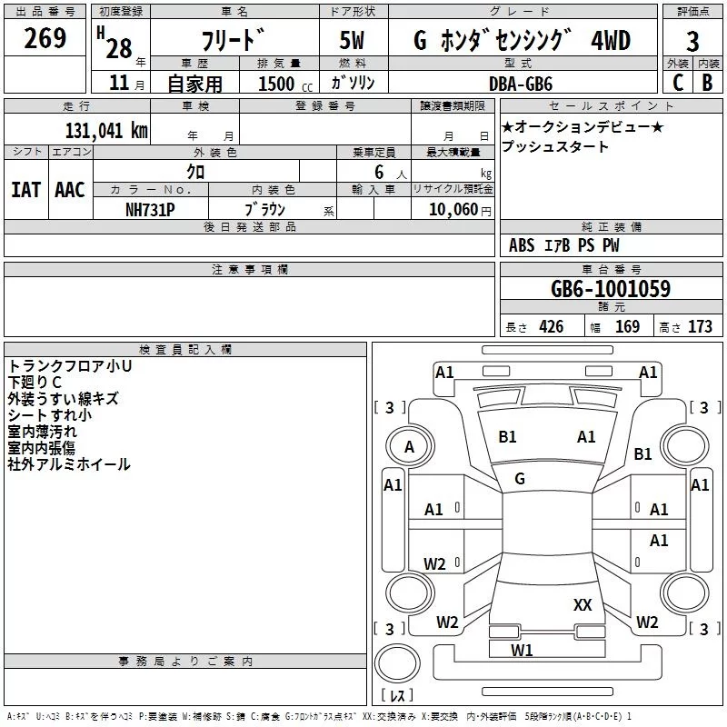 Honda FREED с аукциона Японии TAA Kinki лот № 269