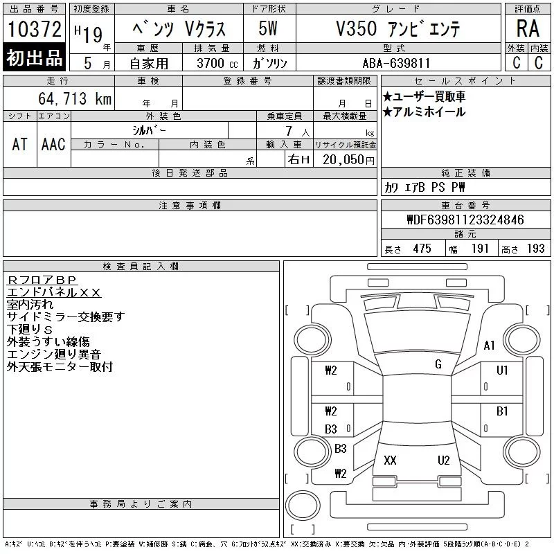 Mercedes-Benz V CLASS с аукциона Японии CAA Tokyo лот № 10372