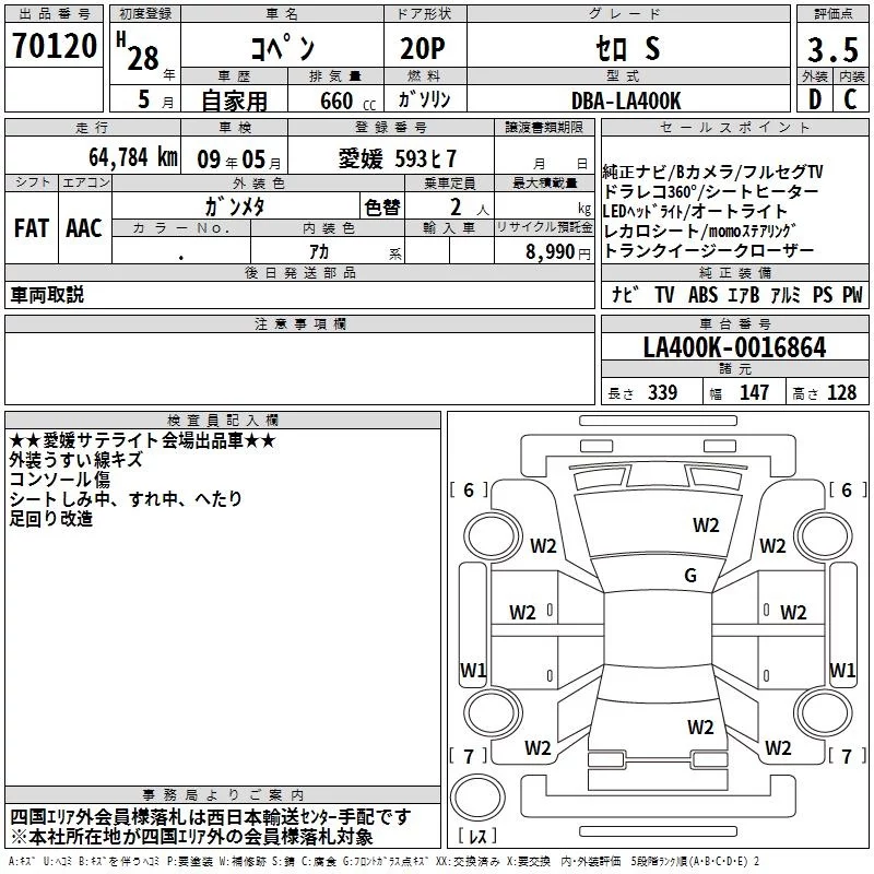 Daihatsu Copen с аукциона Японии TAA Shikoku лот № 70120