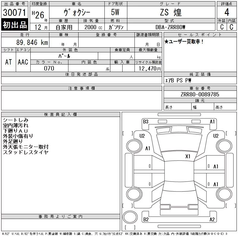 Toyota VOXY с аукциона Японии CAA Tokyo лот № 30071